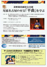 ◆平曲講座 尾張名古屋の至宝「平曲」を学ぶ